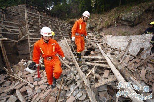 遂宁救援队正在房屋倒坍现场搜救