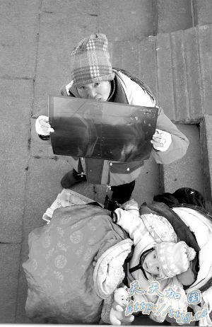 1月29日下午3时,胡寿妹推着婴儿车出现在地铁东单站西北口的地下通道里。婴儿车上蜷缩着一个3岁多的孩子,用各种衣物裹得很严实。胡寿妹说,去年3月,她带孩子来北京看病,花光了钱就开始在这里乞讨,讨了钱就到协和医院买药。
