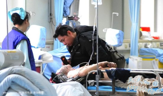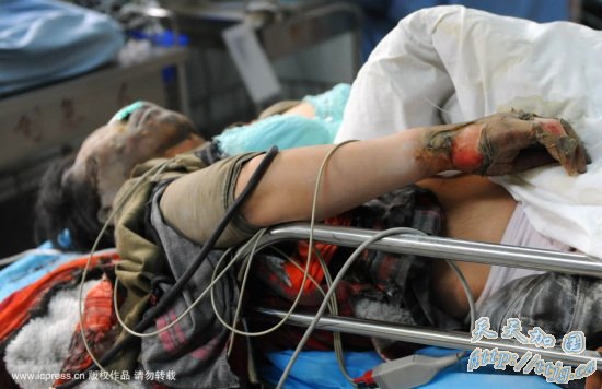 在积水潭医院抢救区内,自焚者张芳已被烧得面目全非。京华时报-东方IC