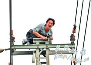 13时45分,男子让王先生把平安符给他送上去,当王先生坐吊车靠近时,男子却站起来,往电线处挪,吊车只好又将王先生送回地下。