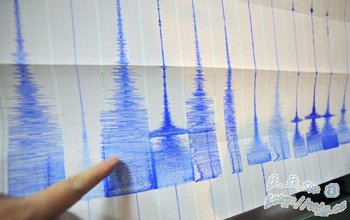 台北中央气象局中的地震监测数据,各地震度非常明显。