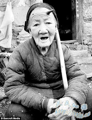 英国《每日电讯报》:中国百岁老太头上“长角”