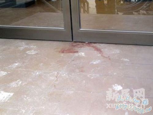 3月19日上午,发生血案的麦当劳餐厅门前仍留着血迹。新民网记者胡彦珣 天钥桥路现场回传图片