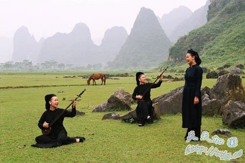 广西边城龙州,山川清秀,水流潺潺,空气里都是湿润的青草味道,河边的竹楼与汲水的姑娘相映成趣,牛背上的牧童悠悠地吹着悠扬的牧歌,一派水墨画般灵动清新的田园风光。然而更加吸引人的怕是距中越边境仅十多公里的金龙镇板池屯“美女村”。这里山青水明,竹木茂盛,村中女子几乎全都面貌娇好,聪明伶俐,人人会织壮锦,个个歌喉甜美,且大都会弹壮族流传了上千年的古老乐器——天琴,真是让人一见倾心。