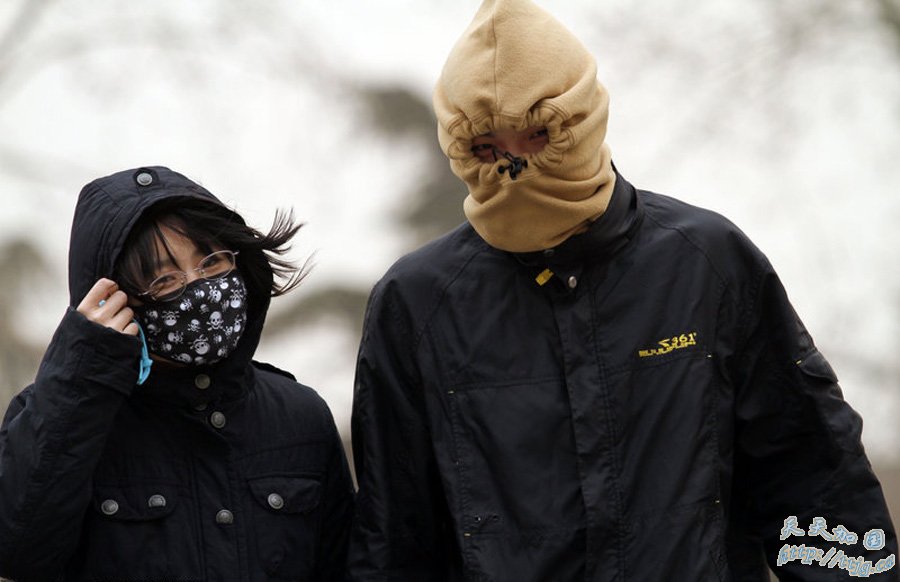 22日,北京遭遇今春第二场沙尘暴侵袭,街头行人“全副武装”应对。