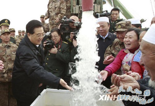 胡锦涛特别强调,最近一个时期,我国一些省区发生了严重旱灾,给人民群众生产生活带来很大影响。当地驻军一定要想人民群众之所想, 帮人民群众之所需,解人民群众之所难,密切配合地方党委和政府,积极投身抗旱救灾斗争,为打赢这场硬仗做出更大贡献。