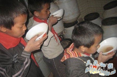 灾区学生喝脏水解渴