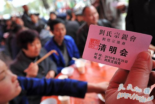 从两周前,刘广霖就开始挨家挨户统计赴宴人数、发放餐券,参加坝坝宴的族人需要凭券入场。“第一批餐券只印发了650张,结果不到两天就发光了。前前后后又增印了200多张,但还是不够。”昨日中午,200多名晚来的刘姓人赶到现场后,因没位置,只好怏怏离去。