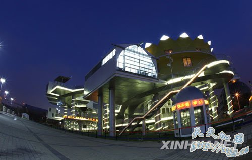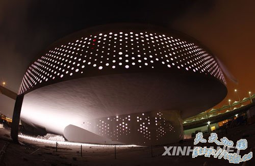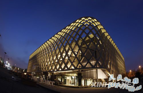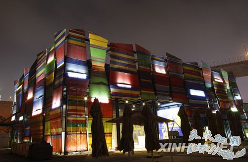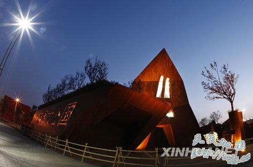 4月7日晚拍摄的进行灯光调试的上海世博会波兰馆。上海世博会开幕在即,世博园区内各场馆纷纷在夜间调试灯光,为试运营做准备。