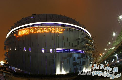 4月5日,新加坡馆正在进行灯光调试
