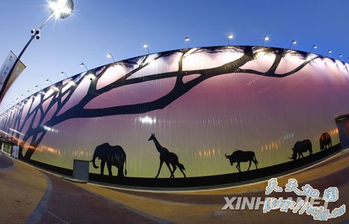 4月 5日,非洲联合馆正进行灯光调试