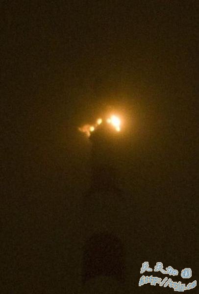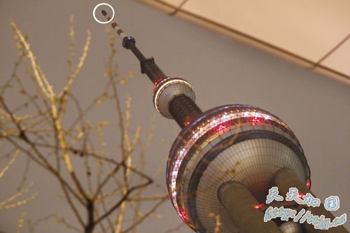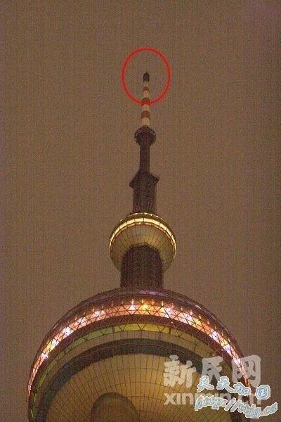 东方明珠顶端发射架天线呈焦黑色