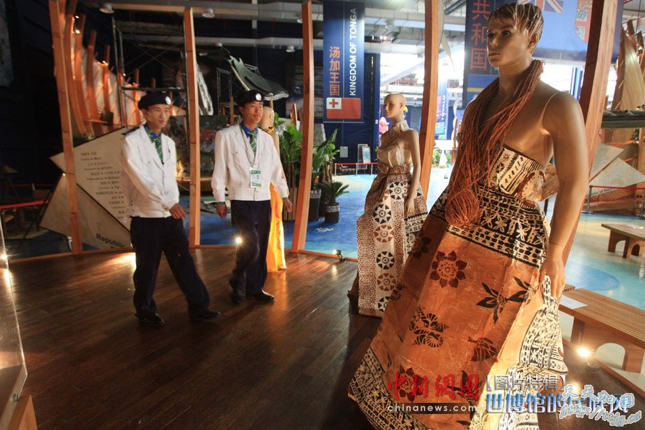 5月1日,上海世博会开园第一天,斐济国的手绘树皮时装在太平洋联合馆展出。