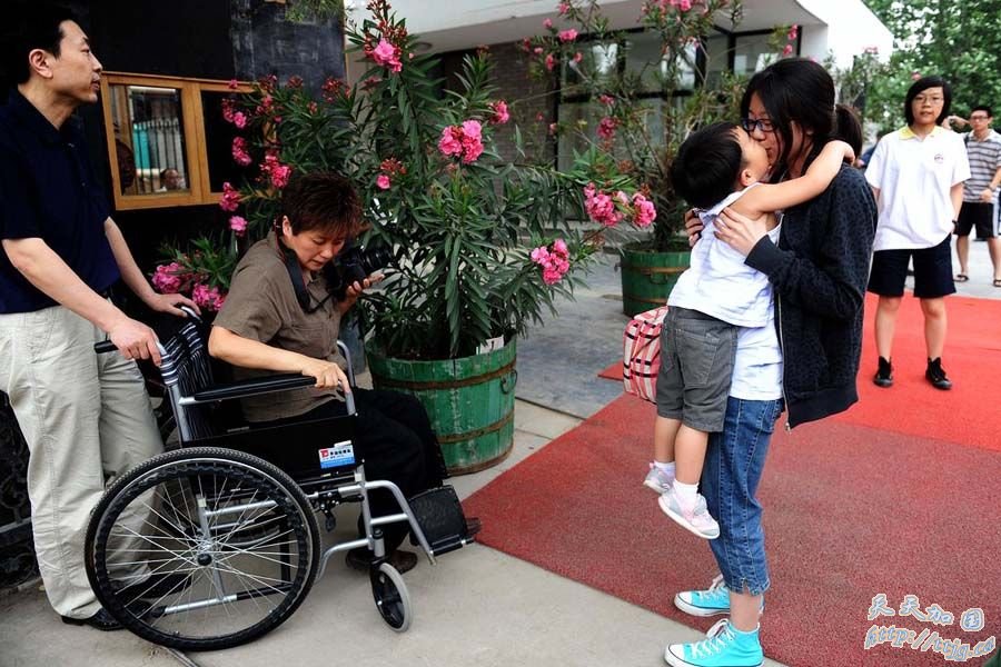 6月8日,高考结束后,在北京2中考点门口,多幕家庭温馨片段集体上演。不满3岁的弟弟深情拥吻考生姐姐。