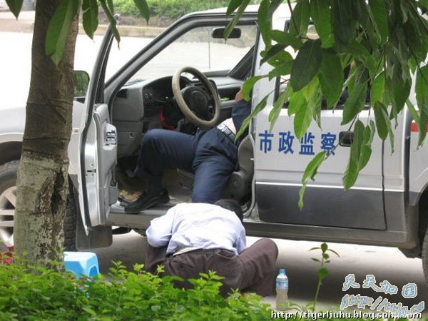 重庆城管躺执法车上让人擦鞋 中队长被撤职(图)