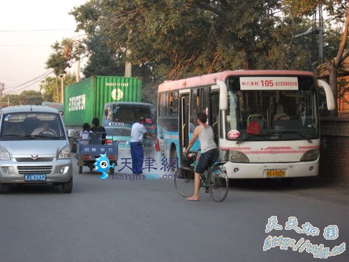 昨晚塘沽105路公交车行使途中自燃
