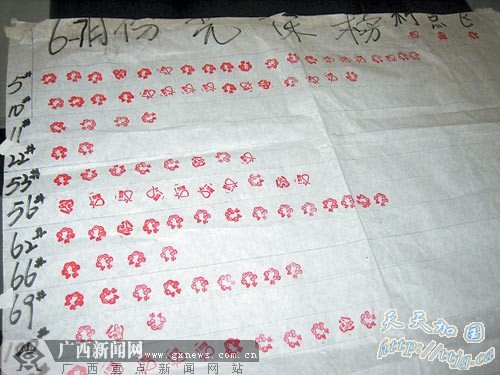 据称,这个光荣榜上的小红戳均只代表给予卖淫女的精神嘉奖。
