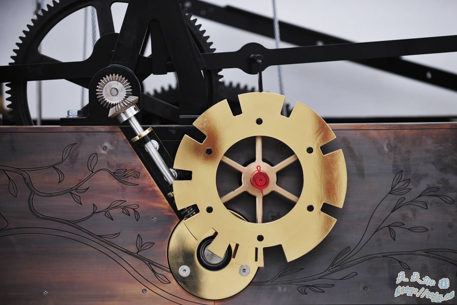 7月14日拍摄的和谐钟塔顶部钟室内美艳绝伦的机芯驱动齿轮。