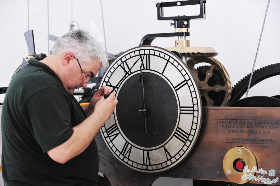 这座世界上最大机械钟,从英国运抵江西赣州市,安装在赣州总投资2.9亿元人民币的和谐公园内一座113米高的“和谐钟塔”上,钟面直径12.8米。