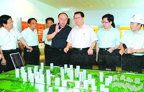 中共中央政治局常委李长春在市领导陪同下考察“民心佳园”公租房建设项目。 记者 万难 摄