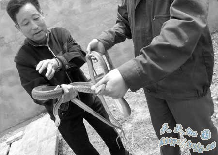 老杨说自己已经记不清被蛇咬过多少次了,不过基本上是被无毒蛇咬的,“因为人们对毒蛇总有一种天然的防范心理,所以不易被咬。而对无毒蛇,被咬一口也没什么大不了的。”