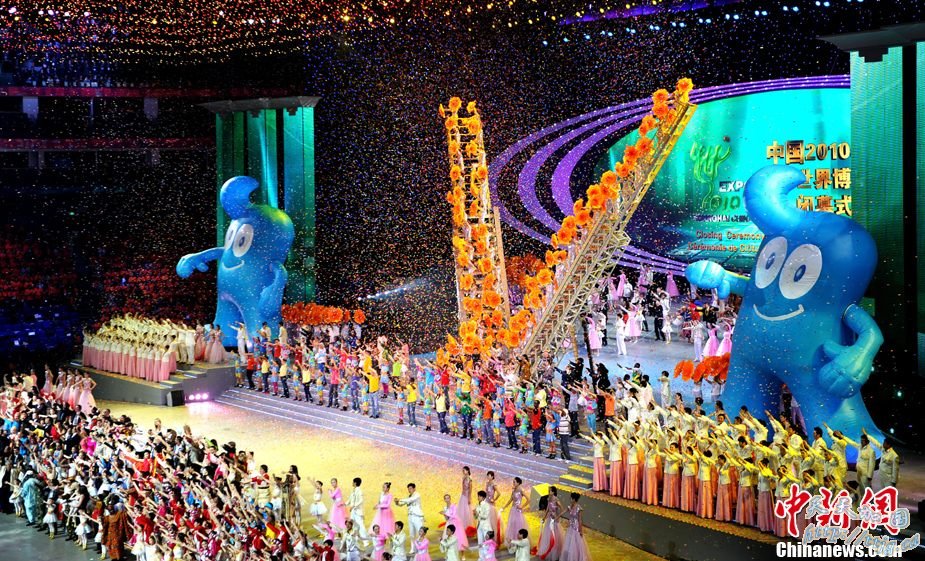 2010年上海世博会闭幕式31日晚在上海世博文化中心举行。中国国务院副总理、中国2010年上海世界博览会组委会主任委员王岐山在闭幕式上致辞说,上海世博会汇聚人类文明创新的成果,拉近了中国和世界的距离,一个更加开放、包容、文明进步的中国将与世界各国一道,共同迎接无限光明的未来!