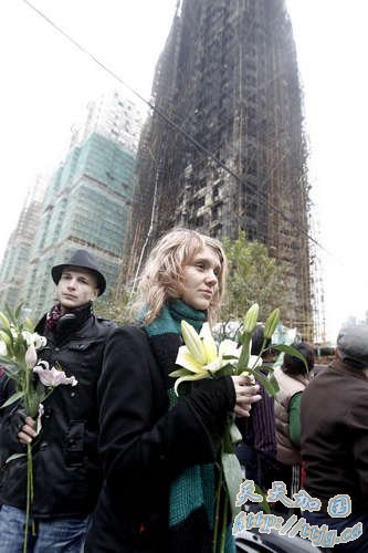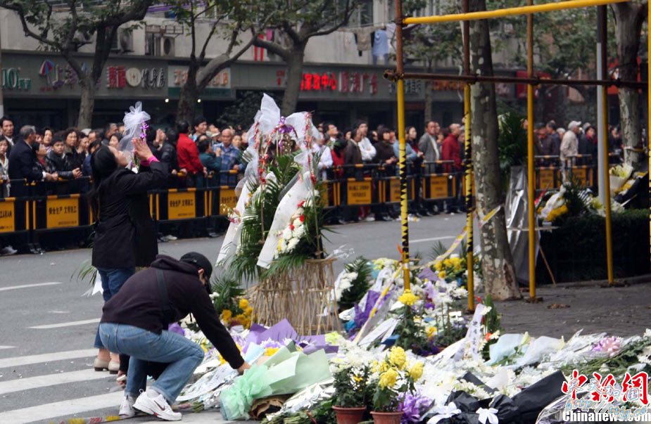11月17日,许多上海市民自发前往静安区胶州路11·15火灾发生地,悼念遇难同胞。