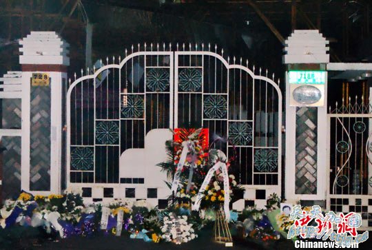 (责任编辑:小芬)2010年11月16日,上海静安区,发生火灾的大楼入口处摆放着市民敬献的鲜花。 11月17日...