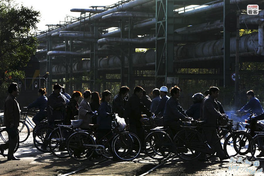 2011年1月13日,素有“十里钢城”之称的石景山首钢工业区全面停产。这座拥有91年历史的北京钢城在履行诺言后,终于在人们的记忆中定格。位于北京石景山区的首钢老厂区占地8.56平方公里,距天安门只有17公里,前身是1919年开始建设的石景山钢铁厂。新中国成立后,首钢作为北京为数不多的以 “首都”冠名的企业,拥有“十里钢城”之称。图为2009年9月7日晚,从石景山上拍摄的首钢厂区夜色。经过新中国成立后数十年的建设,首钢成为一个产业结构完整、基础设施完善的现代钢铁工业社区,最高年产钢近1000万吨,工人一度超过26万人,成为北京工业的标杆企业。鼎盛时期,首钢一家企业的利税就占到全北京市税收的1/4。这里有许多“首钢家庭”,三代首钢人见证了首钢从石景山炼铁厂一路走来,历经“大炼钢铁”的火红年代和“承包制”的黄金岁月。当时首钢福利非常好,冰箱、彩电都能在首钢购物中心买,羊肉片、猪肉、鱼,过年过节都有。随着北京城市扩张,首钢的位置从当年的“北京西郊”变至北京城区,污染问题也越来越被外界关注。由于国家没有批复发展规划,首钢多年来不能扩大规模,在中国钢铁业发展突飞猛进的新时期,首钢却还是维持1994年的 800余万吨产量不动。几十米高的厂房、纵横的铁路、巍峨的高炉,要将一个年产800多万吨的钢铁企业整体停产,需要安置分流职工6.47万余名,这在中国乃至全世界都是史无前例的。 但如果首钢继续守在北京,曾经的“钢铁巨人”与中国其他钢铁企业的差距会越拉越大。首钢地处北京上风处,粉尘很容易被吹进市区。“要首都还是要首钢”的两难选择,在北京申办奥运时尘埃落定。2005年2月,国家发改委正式批复了首钢搬迁方案,决定投资677亿元,在河北唐山曹妃甸“吹沙造地”,建设一个新首钢,至2010年底完成搬迁。首钢搬迁调整的大幕在钢铁价格一路飙升的背景下拉开。2005年6月30日,首钢历史上第一座大型高炉准时停产;2006 年5月9日,世界上炉龄寿命最长的首钢二号焦炉停产;2008年压产400万吨,4号高炉和第三炼钢厂停产;2010年底,石景山区钢铁主流城全部停产。停产以后,首钢在北京地区所有的冶炼和热轧生产将会全部停止,只保留一处冷轧薄板厂,这个冷轧薄板厂也并没有在石景山厂区,而是在顺义。2010年12月 20日,首钢高速线材厂产出最后一批轧钢。生产线上,冷却水洒在刚刚成型的钢材上,通红的钢材上立刻腾起一股股白色的蒸气。不少工人穿着标志性的蓝色棉大衣,头戴安全帽,在生产线旁拍照留念。