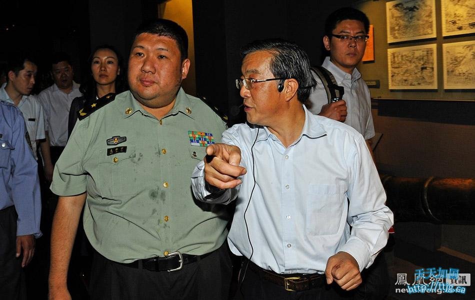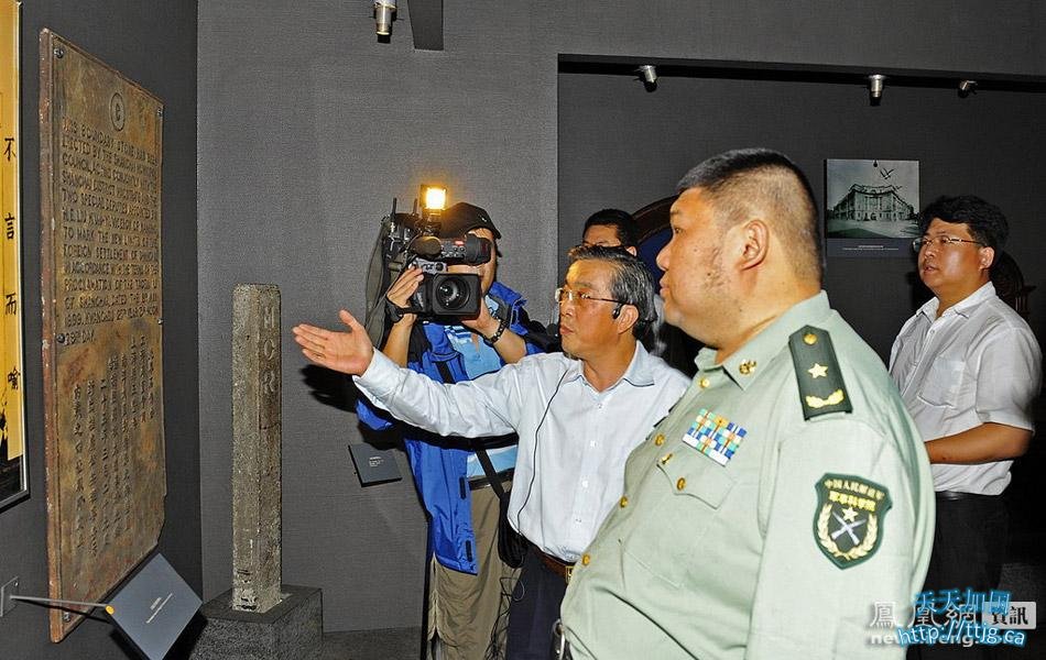 馆长倪兴祥陪同。后方戴眼镜者似有不满