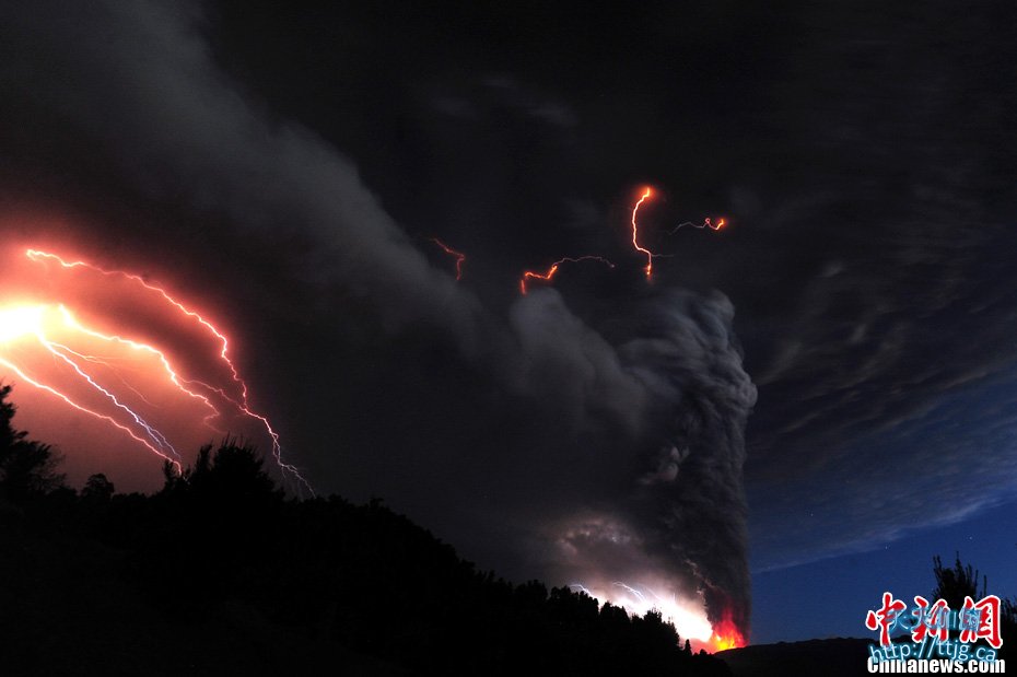 智利南部一座火山4日起开始喷发,5日喷发持续,并出现火山闪电现象;大量火热的火山灰及石块上冲云霄达10公里,导致多趟航班取消,附近3500多人撤离。