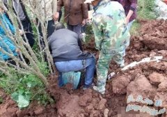 村委会主任肖永国(黑衣者)正在对被埋的两姐妹施救 网友图 村委会主任肖永国(左二)正在对被埋的两姐妹施救 操小容(左)和操时群(右)从泥土里被救了出来...