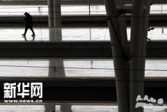 11月15日,工人在京沪高铁的上海虹桥站的站台走过。 11月15日,一辆动车从上海虹桥站处的京沪高铁旁驶过。 11月15日拍摄的铺设完成上海虹桥站处的京沪高铁(白...
