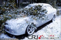2010年10月16日, 黑龙江大庆,路旁的大树被昨晚的大雪压断,砸在路旁的汽车上。 2010年10月16日, 黑龙江大庆,清晨,小区内的停车...