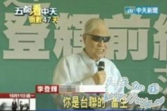 你是台联的畜生!李登辉怎么在替民进党新北市长参选人蔡英文站台时骂起人来了?!原来,他要说的是台联的精神领袖!或许是真的年纪大了,李登辉这次替蔡英文助...