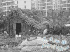 被学校围在中间的就是周金华搭的窝棚,这块地曾是他家的口粮田 现代快报9月16日报道 一块种起蔬菜、搭了窝棚的空地,被周围的高档楼盘、现代化的学校包围。从无...