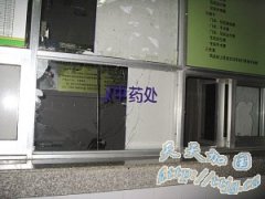 社区医院取药处的玻璃被砸碎。梅建明 于丹丹 摄 新华报业网-扬子晚报9月17日报道 昨天,南京有媒体报道:前天上午10点多,江宁区汤山街道高庄自然村的陈静和丈...