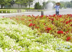 天气太热时花需要每天浇水 王俊伟 摄 金羊网-羊城晚报9月3日报道 随着国庆节 临近,东莞市区不少园林绿化工人又要忙碌起来:市区道路渠化岛新一轮的换花工程即...