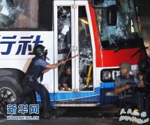 8月23日,在菲律宾马尼拉,警察试图打开被劫持旅游车的车门。新华社/法新 编者按: 香港游客在菲律宾遭挟持事件的幸存者李滢铨,8月29日在《香港明报星期日生活...