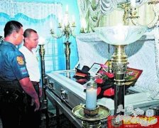 门多萨的遗体依然穿着菲律宾警察制服,棺木上盖上菲律宾的国旗 菲律宾遭革职警官门多萨劫持香港游客,最终造成8人死亡,门多萨则被警方击毙。然而门多萨入棺时...