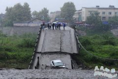四川一天四大桥垮塌 8 月19日,成都崇州市怀远镇老定江桥垮塌。当日9时20分左右,崇州市怀远镇场镇老定江桥发生垮塌,100多米的桥体陷入河水中,初步确定1人遇...