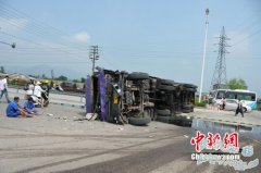 温州一辆槽罐车翻车 30多吨柴油遭村民哄抢