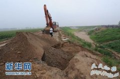 8月11日,挖掘机正在回填双井控导工程出现的一处深沟。 这是8月11日拍摄的双井控导工程坝面出现的塌陷。新华社记者赵鹏摄 这是8月11日拍摄的双井控导工程坝面出...