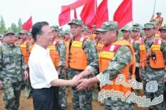 24日,在淮河大堤旁的防汛石料储备点,温家宝慰问在抗洪第一线的解放军、武警和民兵预备役官兵。新华社记者 黄敬文 摄 新京报7月26日报道 国务院总理温家宝24日...