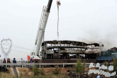 视频说明:辽宁高速发生特大交通事故 32人死亡 工作人员在事故现场进行搜救清理工作。 在事故中彻底烧毁的客车局部。 新华网沈阳5月23日电 23日3时,长(春)深...