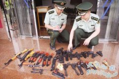 台海网5月13日报道 小学校园周边,店家兜售仿AK47步枪、微冲冲锋枪等玩具,还配备具有一定杀伤力的子弹,颇受小学生们青睐。10日,这些仿真手枪被警方没收。 10...