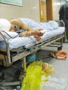 受伤的郑某躺在病床上 刘老太看管的水果店 扬子晚报4月17日报道 昨天下午2点20分,一名男青年在南京迈皋桥老街一水果店里摸走了钱盒里的100多元钱,被看摊的年...