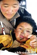 在接受救治过程中,坚强的小彭措尼玛一声不吭。新华社发 父亲在地震中受伤,母女紧握双手相互鼓励。 东北网4月18日报道 玉树地震第三天,第一时间赶到玉树结古...