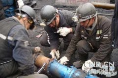 视频说明:根据现场救援情况,救援队伍决定实施新的救援方案,从煤矿上方钻孔,经过透水的巷道,将水直接排到巷道下方的空心区。 救援人员正在组装水泵 中国广...