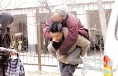 中年男子每天背病母上班 应酬见客不例外